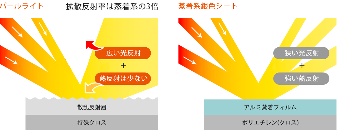 在抑制热反射的同时,它比银片反射光的面积更广。补偿阳光不足并促进生长。